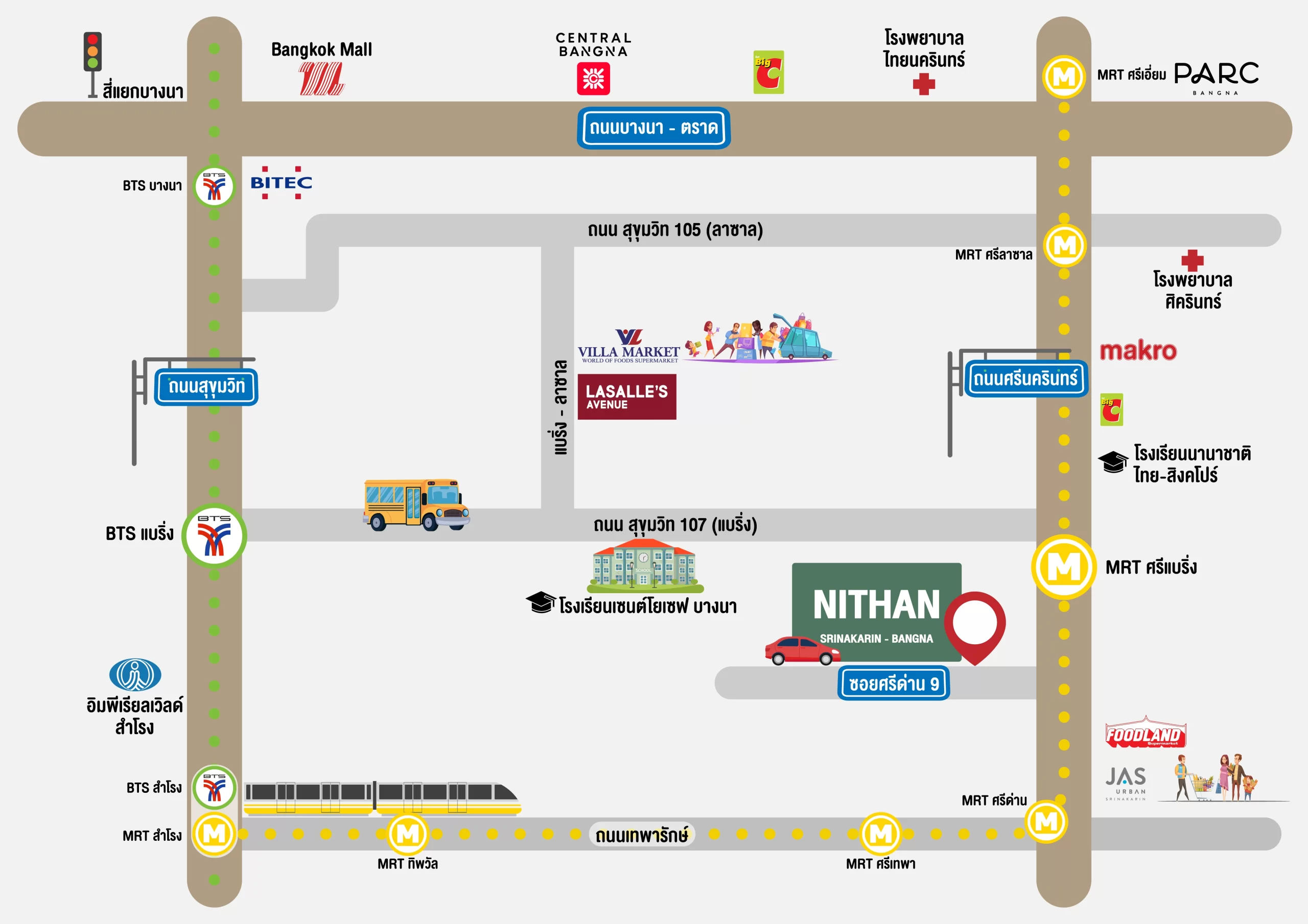 200 เมตร – รถไฟฟ้าสายสีเหลือง สถานีศรีแบริ่ง